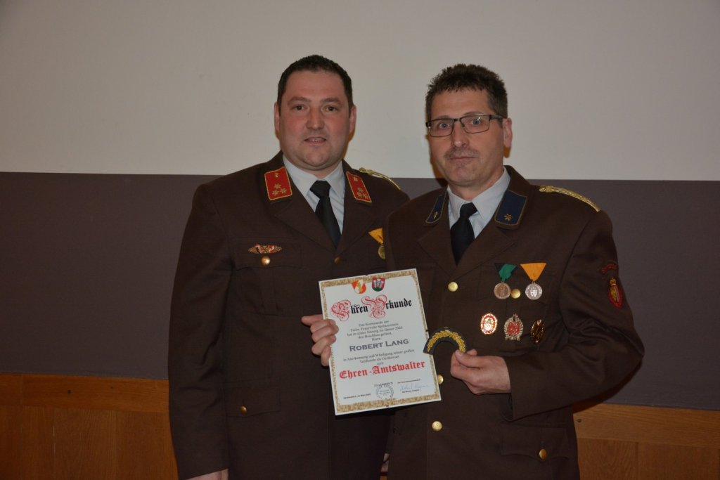 Für die 25-jährige Dienstzeit wurde Andreas Hofer und Michael Kriegner  und für die 40-jährige Dienstzeit Martin Pühringer durch HBI Kriegner, Bgm. Roland Bramel und Abschnittsfeuerwehrkommandant BR Andreas Pachner geehrt.