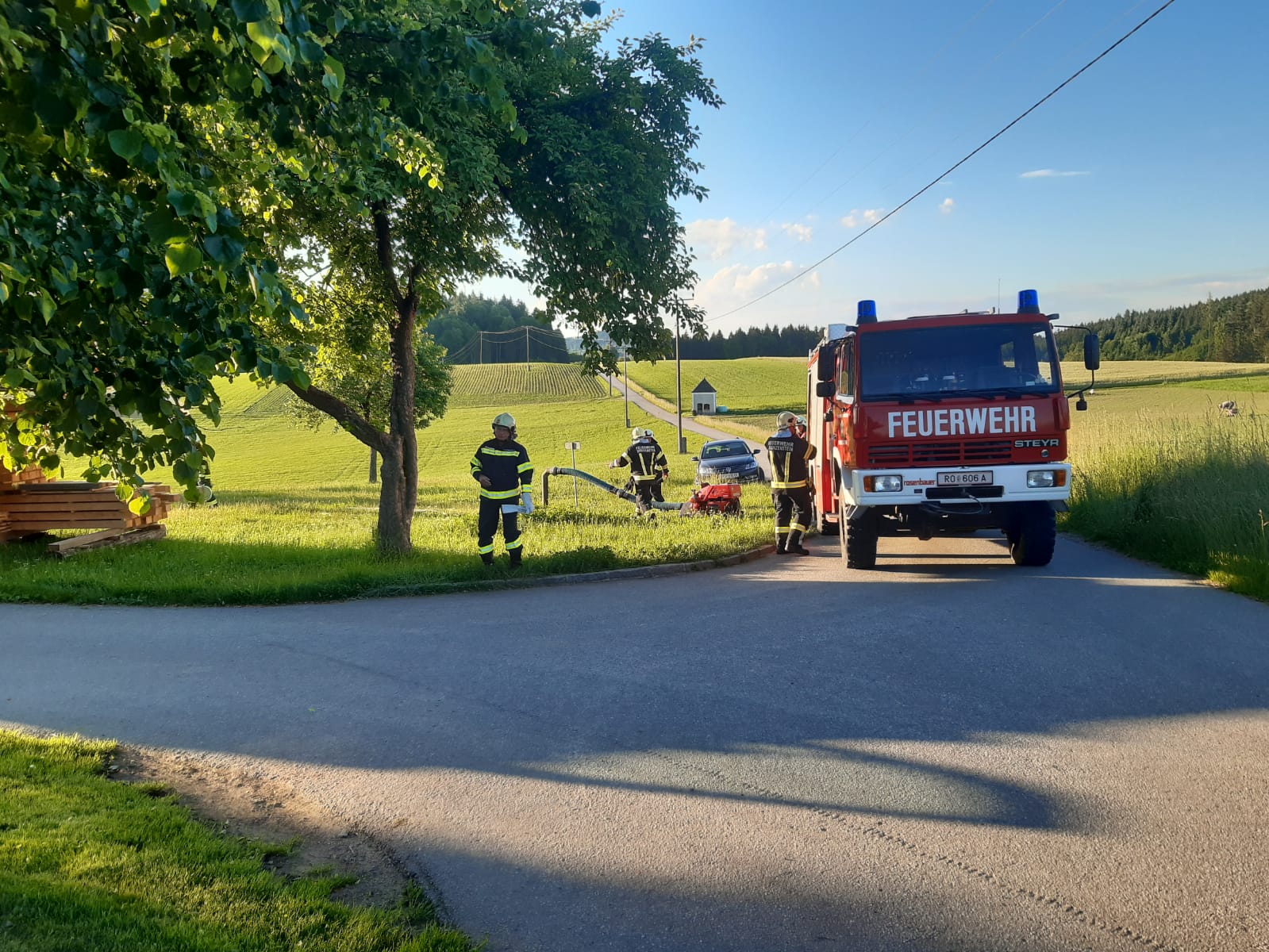 Übungsannahme war ein Scheunenbrand bei Familie Höppe in Altenhofen. Als wir beim „Einsatzort“ eintrafen stellte sich heraus, dass die Scheune in Vollbrand steht und sich zwei Personen im Objekt befinden. Mittels Atemschutz konnten diese nach kurzer Zeit ausfindig gemacht und geborgen werden. Nebenbei wurde mittels der Tragkraftspritze eine Löschleitung vom Löschwasserbehälter aufgebaut um die umliegenden Gebäude zu schützen und die Brandbekämpfung durchzuführen. Nach ca. einer Stunde konnte die Übung für beendet erklärt werden. Weiters wurde noch eine Nachbesprechung abgehalten und die Einsatzbereitschaft wieder hergestellt.