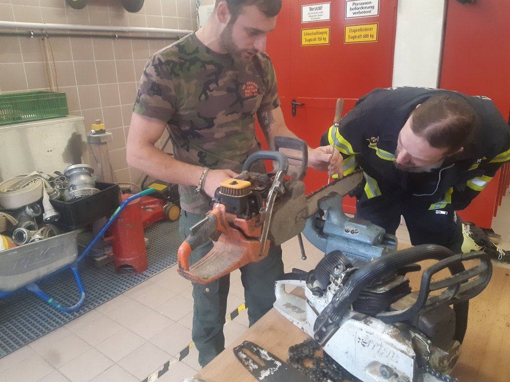 Am Freitag den 17.07 trafen wir uns im Feuerwehrhaus zur Monatsübung. Thema war dieses mal die Motorsäge im Einsatz.