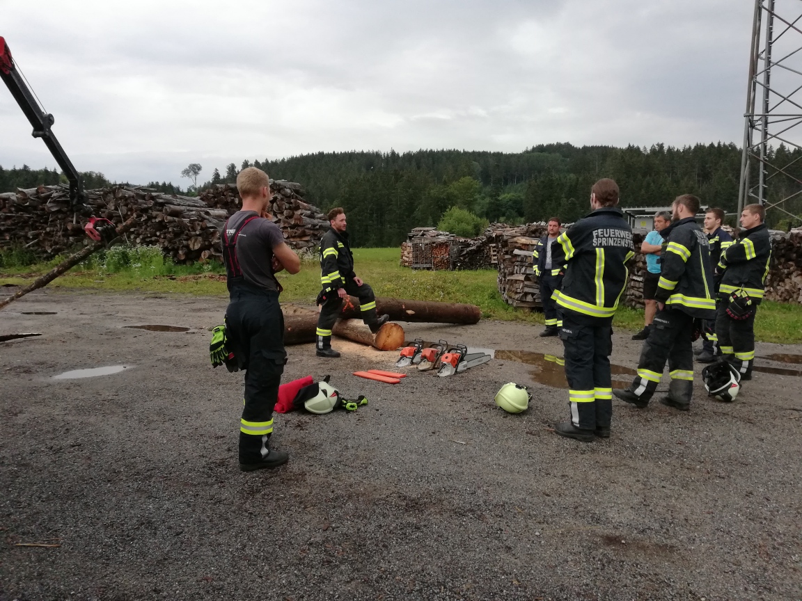 Da es bei uns immer wieder Sturmeinsätze gibt, wo die Motorsäge benötigt wird, um Verkehrswege freizulegen, führten wir eine Übung mit verschiedenen Stationen durch. Bei der ersten Station wurde die Wartung der Motorsäge besprochen. Anschließend wurde im Freien die richtige Schnitttechnik sowie das Händling der Motorsäge erläutert und beübt. In weiterer Folge wurden noch unsere neu angeschafften Akkugeräte vorgestellt.