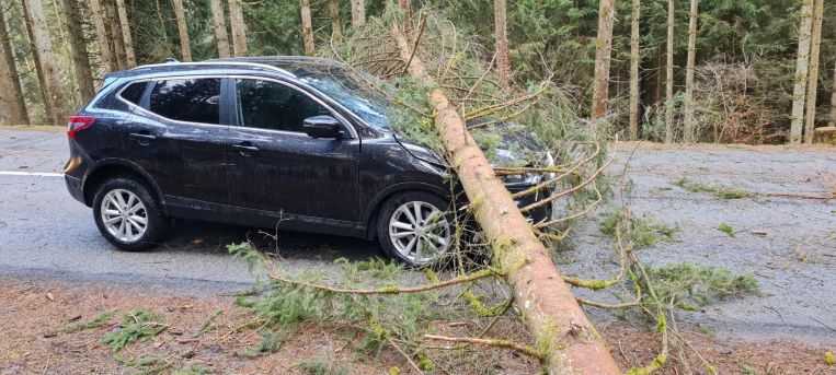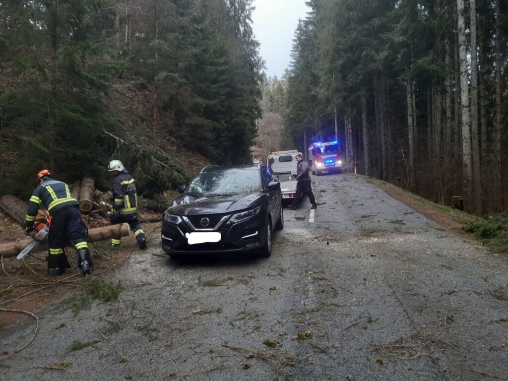 Am Donnerstag, 17. Februar, fegte über Oberösterreich das Sturmtief Ylenia. Am späten Nachmittag heulte auch in Sprinzenstein die Sirene zum Einsatzstichwort: “ Baum auf PKW“. Der Einsatz ereignete sich auf der L588 Tannberg Straße km 5,0.