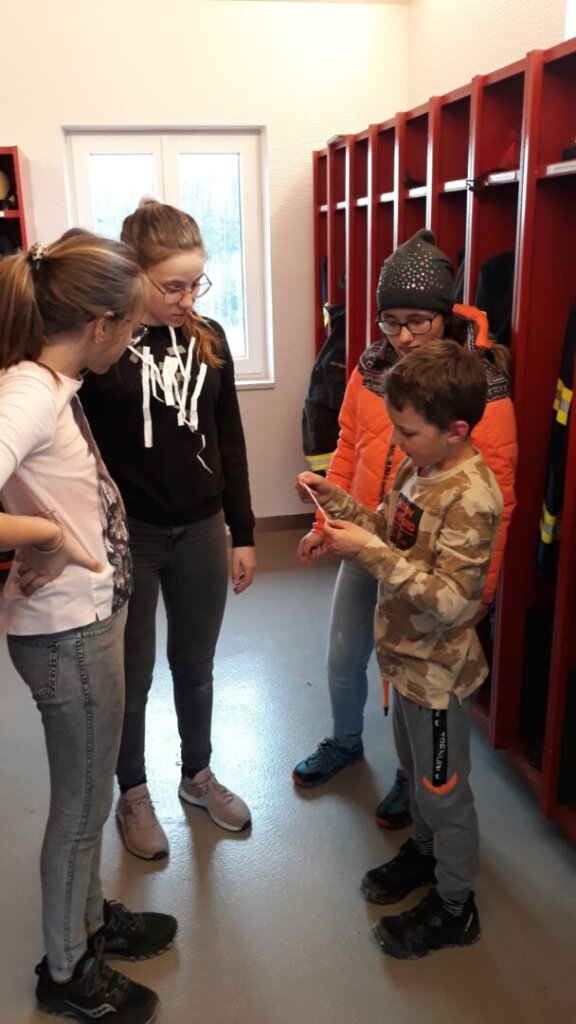 Am 8. April traf sich die Jugendgruppe zu einer etwas anderen Art von Feuerwehrübung – zu einer Schnitzeljagd durchs FF-Haus. In drei Gruppen folgten sie den Hinweisen und entdeckten so manchen bis dahin unbekannten Winkel. Bei verschiedenen Aufgaben stellten die Jugendlichen ihr Feuerwehr-Wissen und -Können unter Beweis. Nach zwölf Hinweisen erreichten sie das Ende der Schnitzeljagd und waren sich einig – das war eine coole Schlechtwetter-Alternative zum Bewerbsbahn-Aufbauen… 🙂