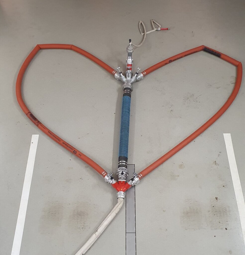Auf Armin und Bernadette wartete auch eine Sonderprüfung mit dem TLFA-B2000. Sie mussten mit den Wasserführenden Armaturen eine Figur nachbauen und dann damit die Treffsicherheit bei der Spritzwand unter Beweis stellen. Sie meisterten die Teamaufgabe hervorragend und so begab sich der Hochzeitszug mit den geladenen Gästen Richtung Altenfelden zum Wildparkwirt. Am Abend durften wir die Feier mit einem Spiel mitgestalten und als besonderes Geschenk überreichten wir eine Kübelspritze, welche für Armin und Bernadette angefertigt wurde.