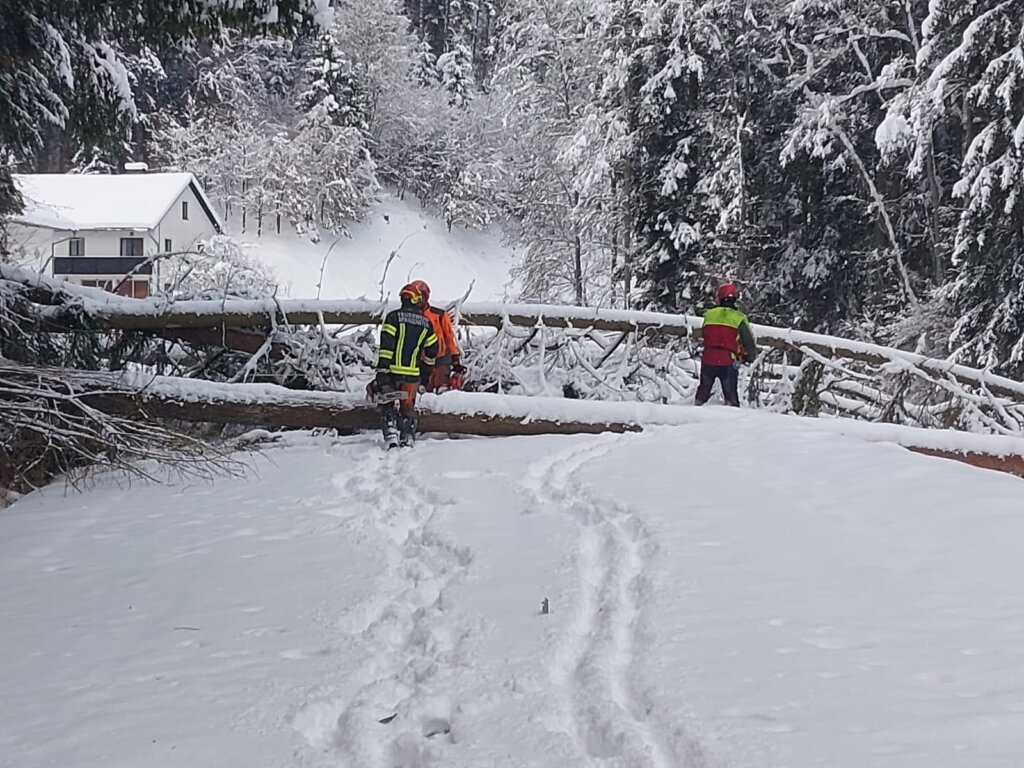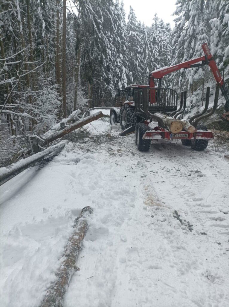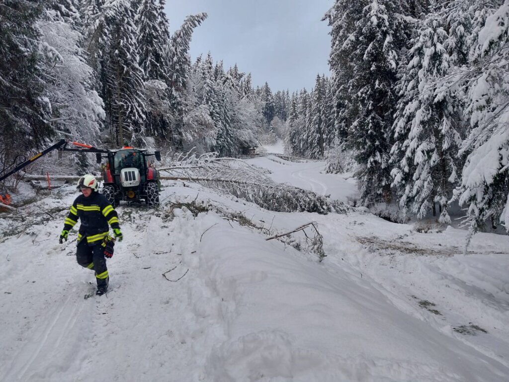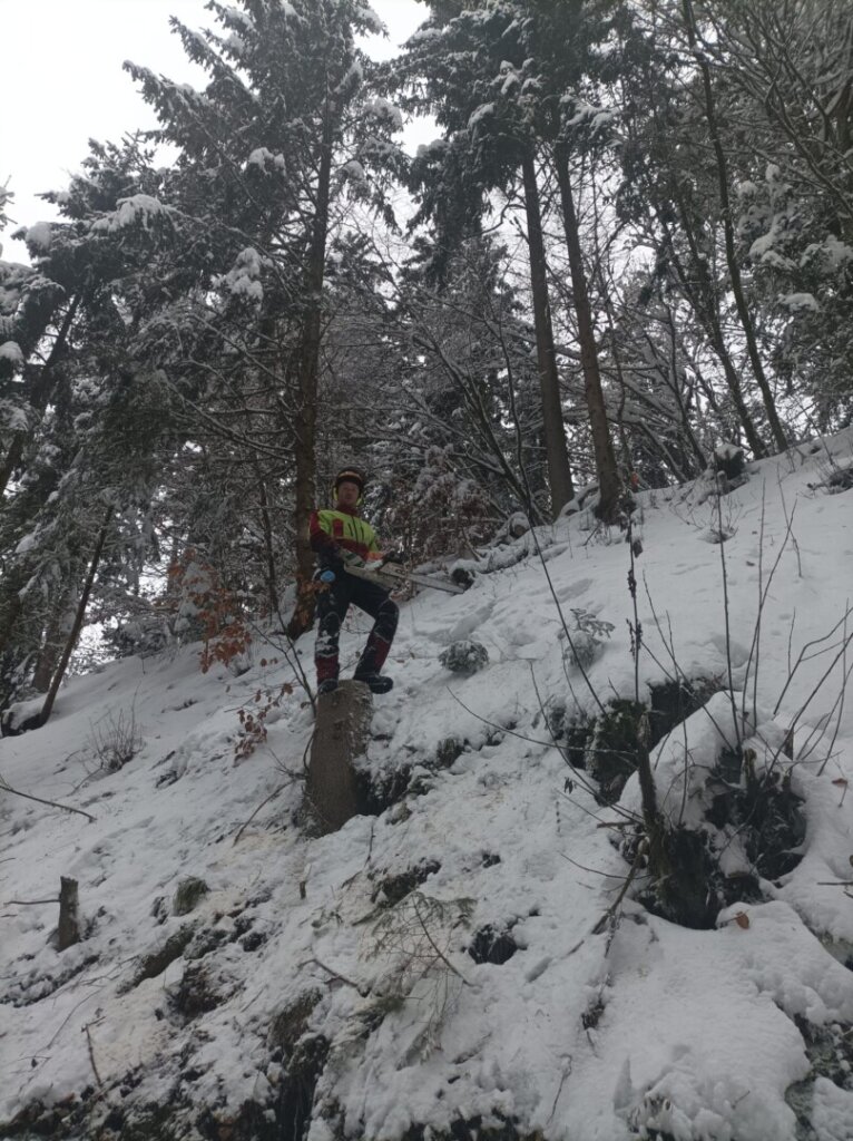 Parallel dazu kümmerte sich eine dritte Mannschaft um nahezu umgestürzte Bäume auf der L1527 (Lämmerstorf): Entweder sie wurden gefällt oder von der Schneelast befreit, sodass die Straßen nun hoffentlich lange frei bleiben. Unter erheblichem Personaleinsatz gelang es, alle umgestürzten Bäume aufzuforsten und in Absprache mit den Waldbesitzern an geeigneten Plätzen zu lagern.