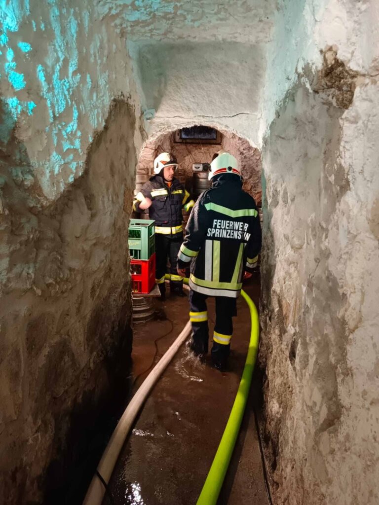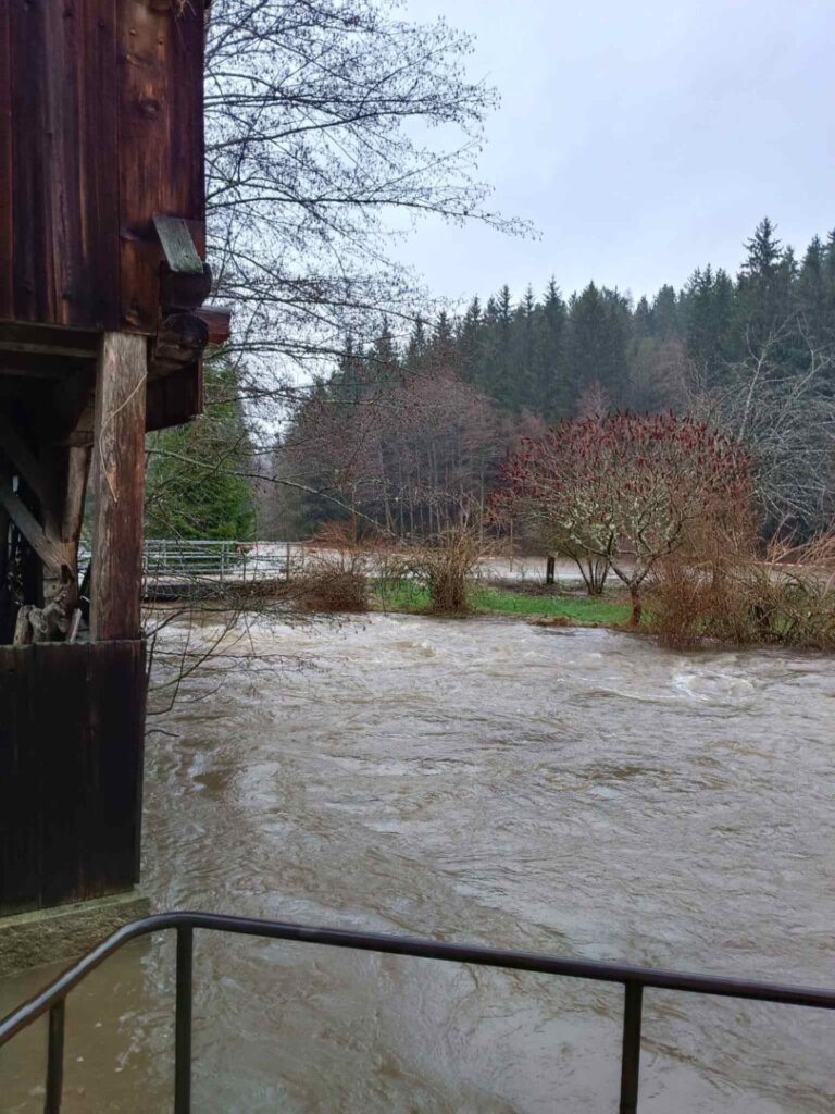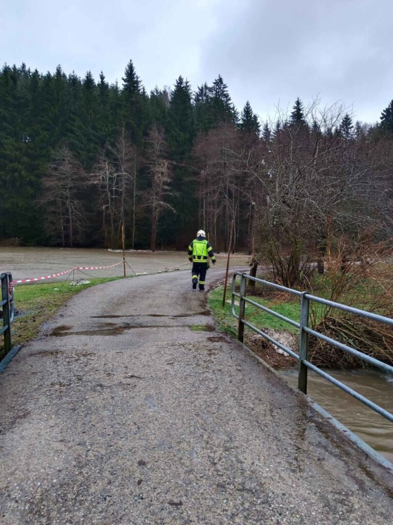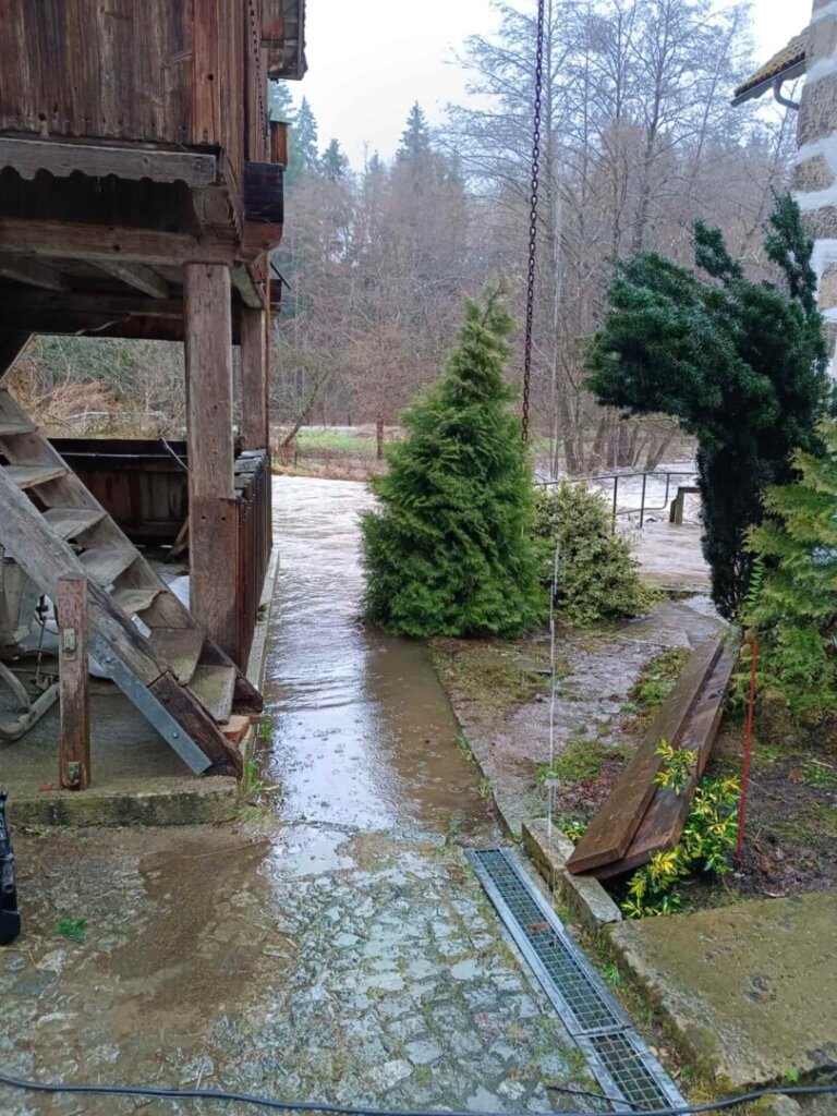 Durch den dauernden Starkregen sind viele Kanäle und Abwasserführungen überfordert. Der mittlerweile 5te Einsatz an diesem Tag war mittels Sirenenalarmierung. Um 14:30 rückten wir zur Koblmühle aus. Die kleine Mühl war bereits weit über die Ufer getreten und der Keller stand unter Wasser. Vor Ort pumpten wir den Keller mit Hilfe von Tauchpumpen aus. In der Zwischenzeit verhinderten wir mittels Sandsäcken, Siloplanen, Schaltafeln und Dichtbändern das weitere Eindringen von Wasser. Aufgrund des andauernden Regens kommt nach wie vor Wasser nach und so laufen die Pumpen weiter. Hoffentlich geht der Wasserpegel bald zurück.