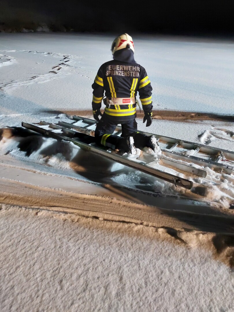 Passend zur Jahreszeit und den Kalten Temperaturen, haben wir uns mit dem Thema „Eisrettung“ beschäftigt. Auf der Teichanlage, in der nähe des Feuerwehrhauses in Sprinzenstein, wurden verschiedene Gerätschaften ausprobiert und besprochen. Es wurde das Spineboard, verschiedene Leitern, usw. ausprobiert um möglichst schnell und sicher auf dem zu gefrorenen Teich voran zu kommen. Nach ca 1,5h wurde die Übung wieder beendet, und wir fuhren mit unseren Einsatzfahrzeugen wieder in das Feuerwehrhaus. Im Anschluss wurden die Erfahrungen in gemütlicher Runde Ausgetauscht. Danke an Johannes Gattringer für die super Vorbereitung der Monatsübung.