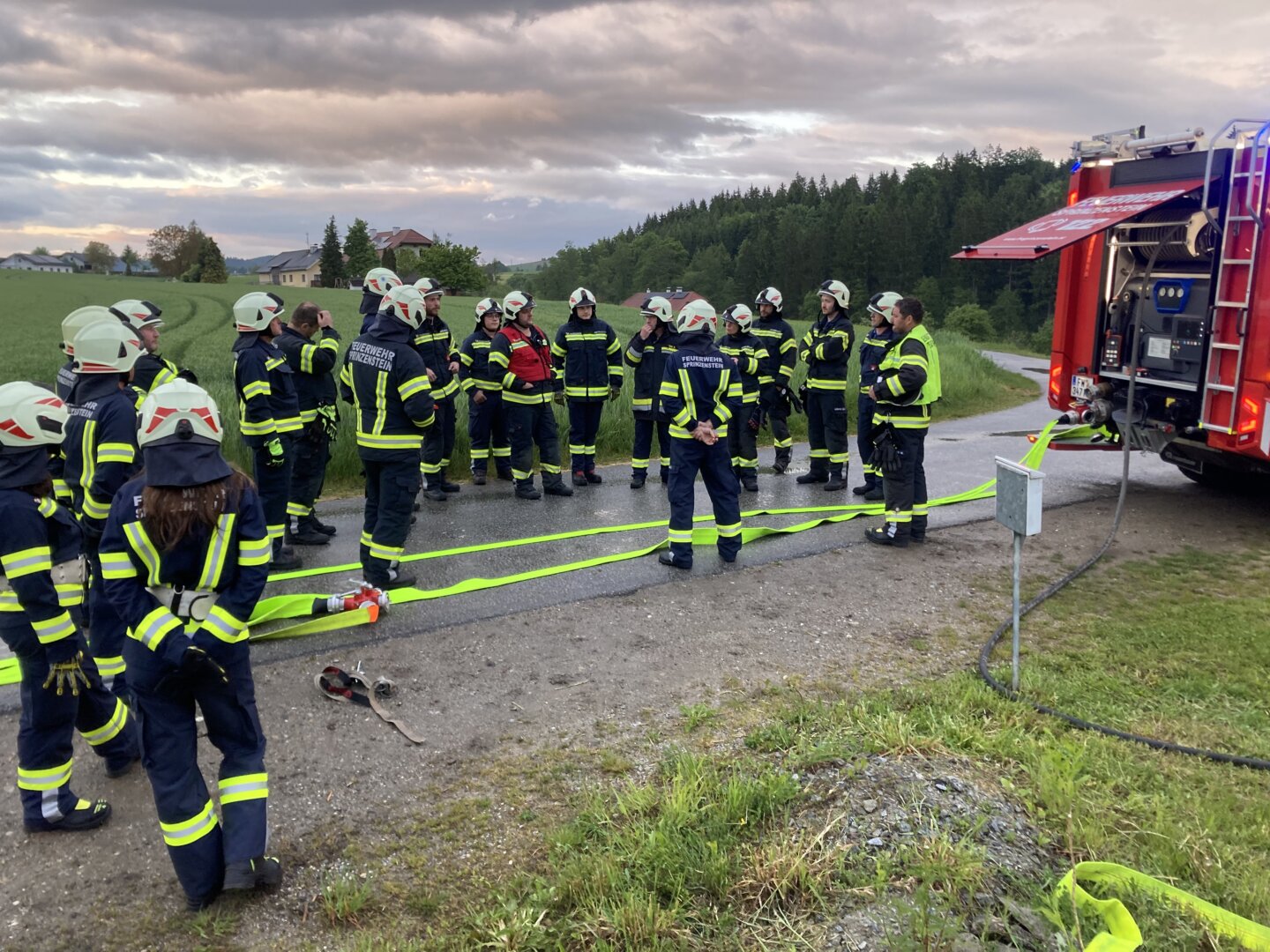 Annahme war ein Brand einer Hütte, wir Fuhren mit allen 3 Einsatzfahrzeugen (TLFB, LFB, KDO) aus. Mit dem Tanklöschfahrzeug (TLF) wurde die Lage erkundet, unter Atemschutz wurde mit einer Löschleitung ein Angriff gestartet, des weiteren wurde noch ein weiteres Rohr Aufgebaut. Zeitgleich hat die Besatzung des Löschfahrzeuges (LFB) eine Wasserversorgung vom Hydrant hergestellt. Das Kommandofahrzeug (KDO) hatte die Aufgabe die Einsatzleitung aufzubauen und zu Koordinieren. Im Anschluss wurde am Ort des Geschehen eine Nachbesprechung und Analyse der Übung gemacht. Nach dem Herstellen der Einsatzbereitschaft, Reinigen und befüllen, der Gerätschaften konnte in gemütlicher Runde das ein oder andere Wort ausgetauscht werden.
