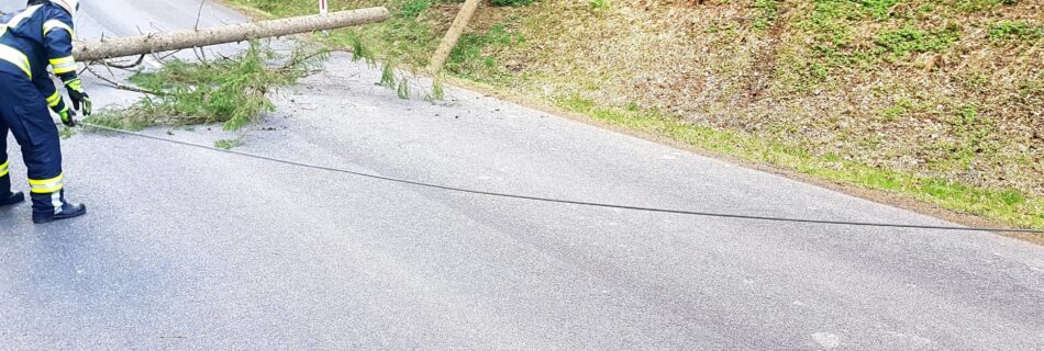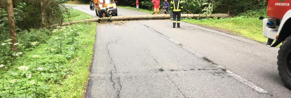 Am Sonntag, in den frühen Morgenstunden, wurden wir mittels Sirene von der Landeswarnzentrale zu einem Baum über Straße alarmiert. Auf der Tanberglandesstrasse, zwischen Sprinzenstein und Koblmühle, mussten wir den umgestürzten Baum entfernen und die Straße für den Verkehr wieder freigeben.