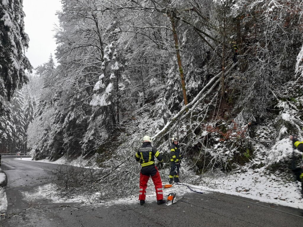 Zu gleich 3 Einsätzen wurden wir in der Nacht vom 19.11 auf 20.11 alarmiert. Die ersten beiden Einsätze um 19:27 und 02:05 konnte die FF Sarleinsbach alleine bewältigen. Zum dritten Einsatz um 08:10 wurden nur wir durch die Polizei alarmiert. Einige kleine Bäume lagen auf der Tannberg Landesstraße im Bereich Altenhofen. Mit der Seilwinde konnte gleich das ganze Paket heruntergezogen werden. Während dem Freimachen der Straße ist ca. 200 Meter hinter uns eine weiter Baum auf die Straße gefallen. Das zuvor nachgerückte LFB-A2 konnte sich gleich um diesen Baum kümmern. Danke an die Polizei, die während des Einsatzes den Verkehr über Altenhofen umgeleitet hat und auch die KameradInnen die immer wieder im Einsatz standen.